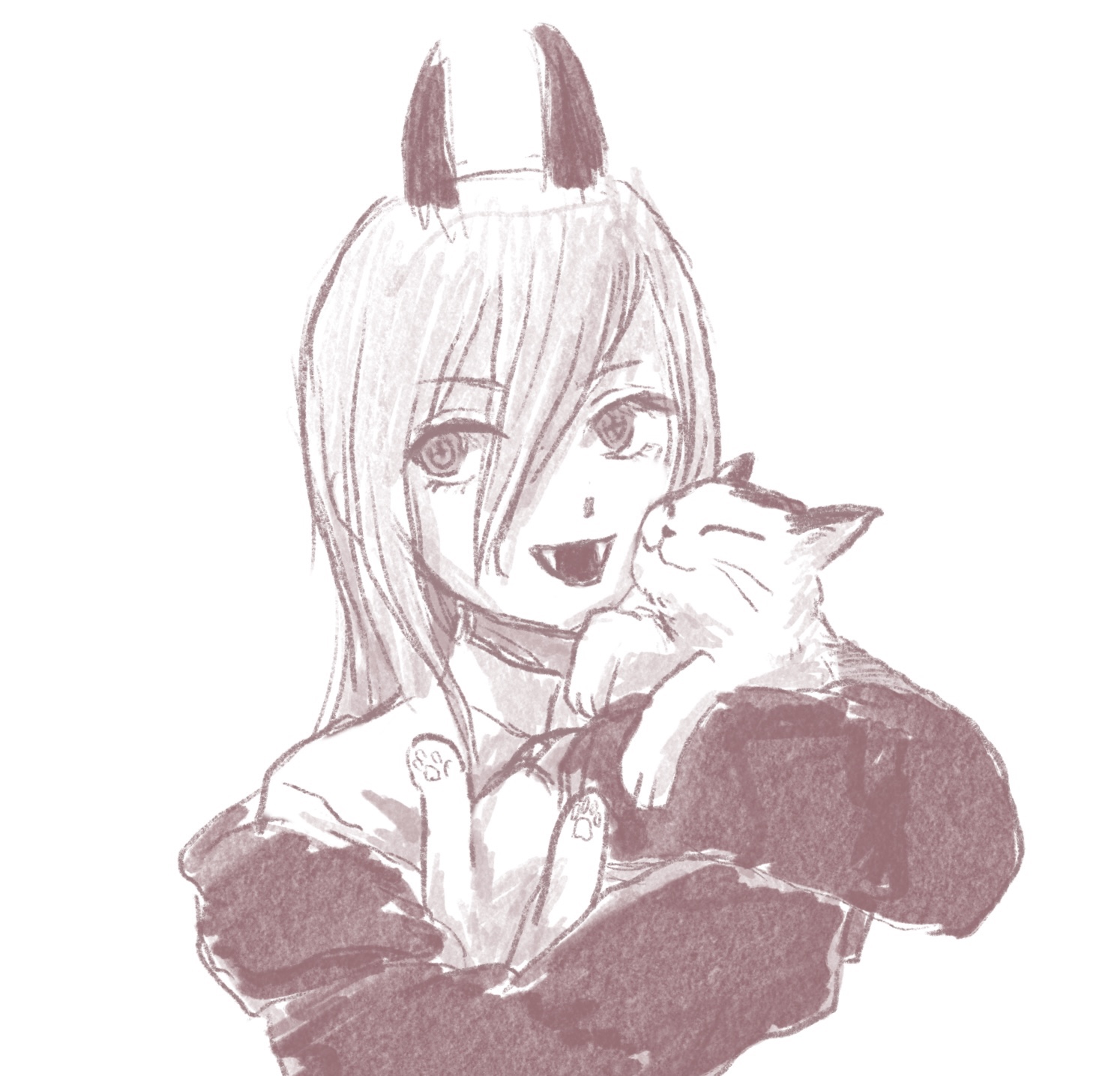 これを書いているのは読んだ翌日だが、まだ少し引きずっている感じがする。とりあえず大好きなパワーちゃんとニャーコを描いてみた。